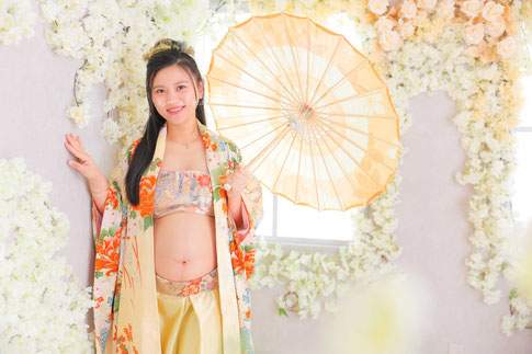 Ai Matsusaka's photo studio in Yokohama offers you maternity photo sessions and newborn photo sessions as well, both with the Kimono outfits