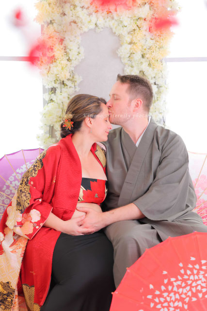 Ai offers a unique photo session with Kimono beautifully tailored for newborn and pregnant body.